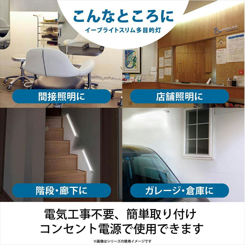 お住まいやお店など様々な場所に手軽に使えるLEDスリムライト、気工事不要のコンセント式(電源コード付属)