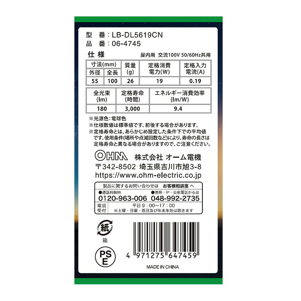 長寿命白熱電球 E26 20W形 クリア LB-DL5619CN 06-4745