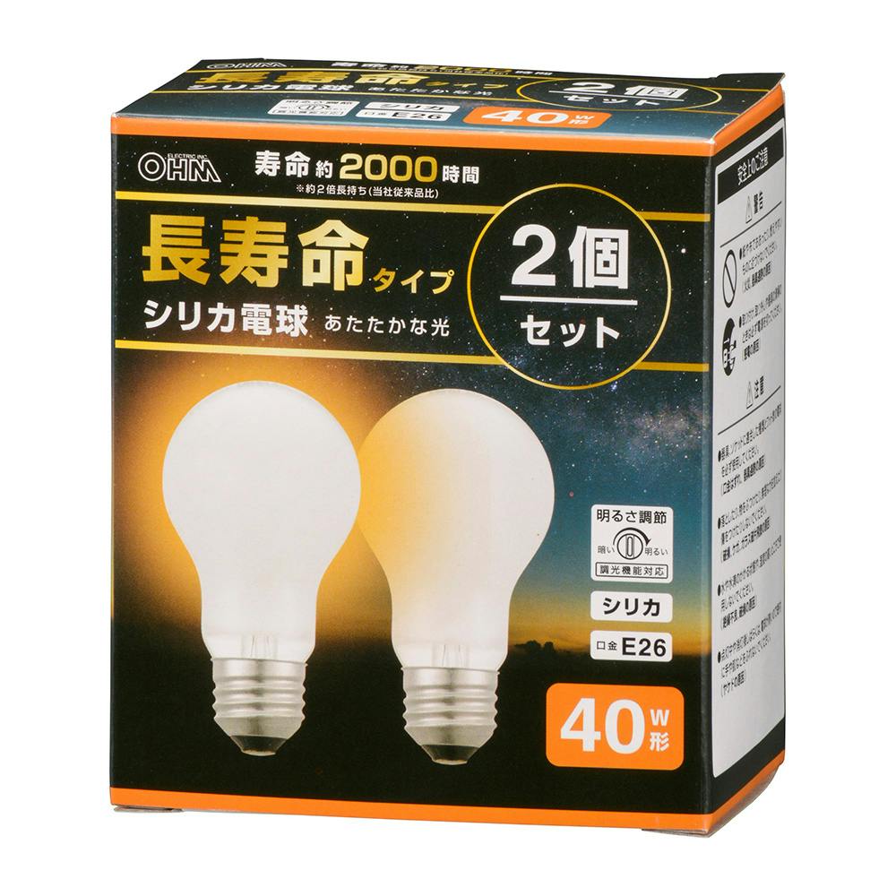 長寿命白熱電球 E26 40W形 シリカ 2個セット LB-DL5638W-2PN 06-4754