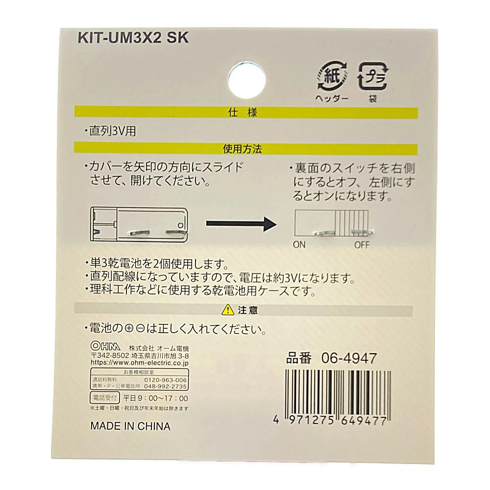 電池ケース 単3×2コ用 スイッチ・カバー付 KIT-UM3×2 SK 06-4947