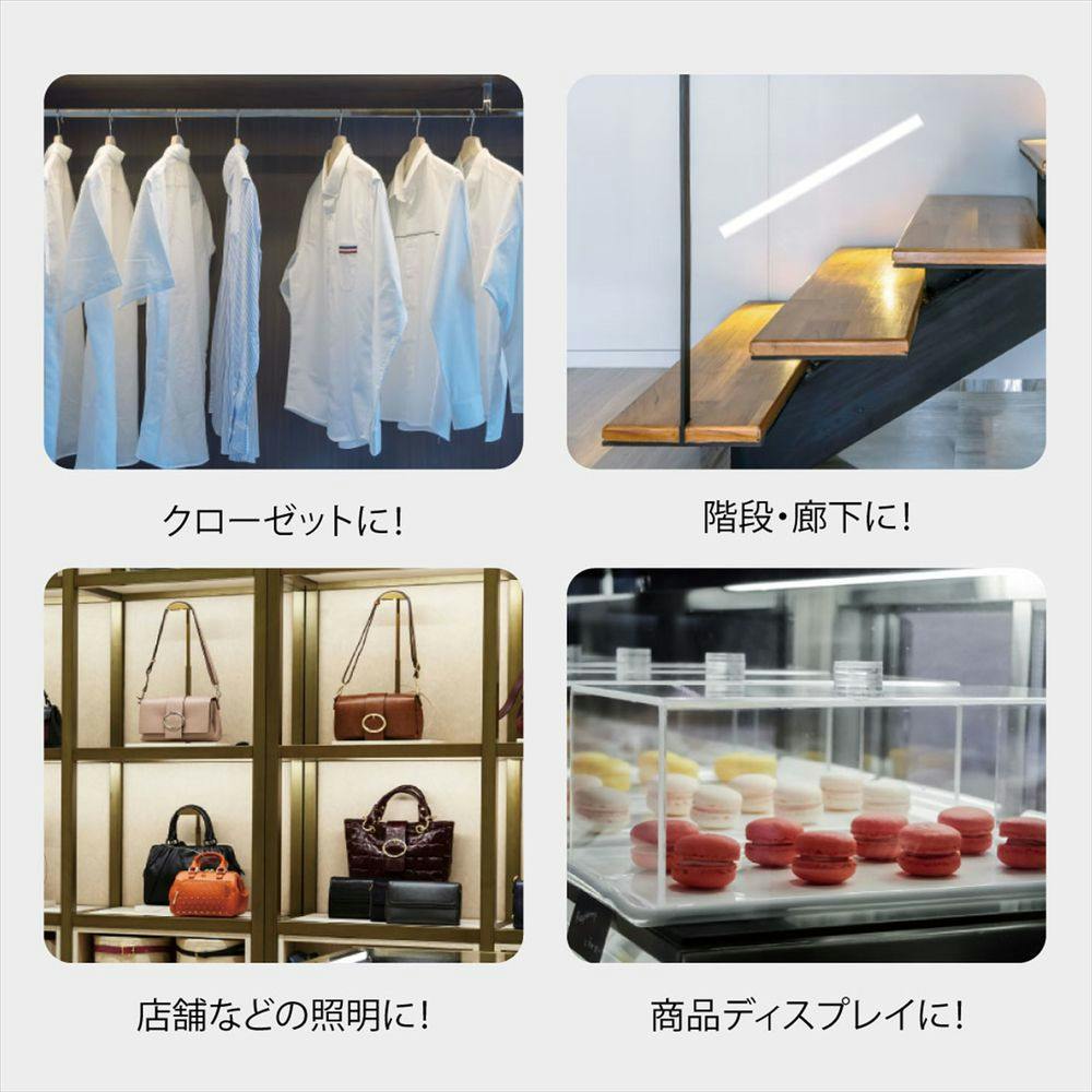 最大9本まで連結可能。面発光・高配光で連結部まで明るい。