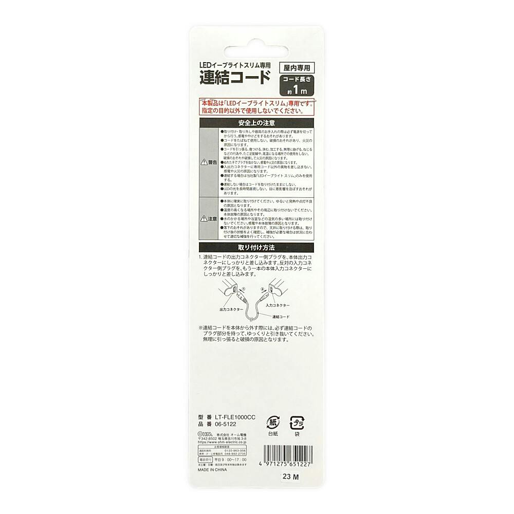 ●LEDイーブライトスリム専用の連結コード ●屋内専用 ●型番:LT-FLE1000CC ●品番:06-5122