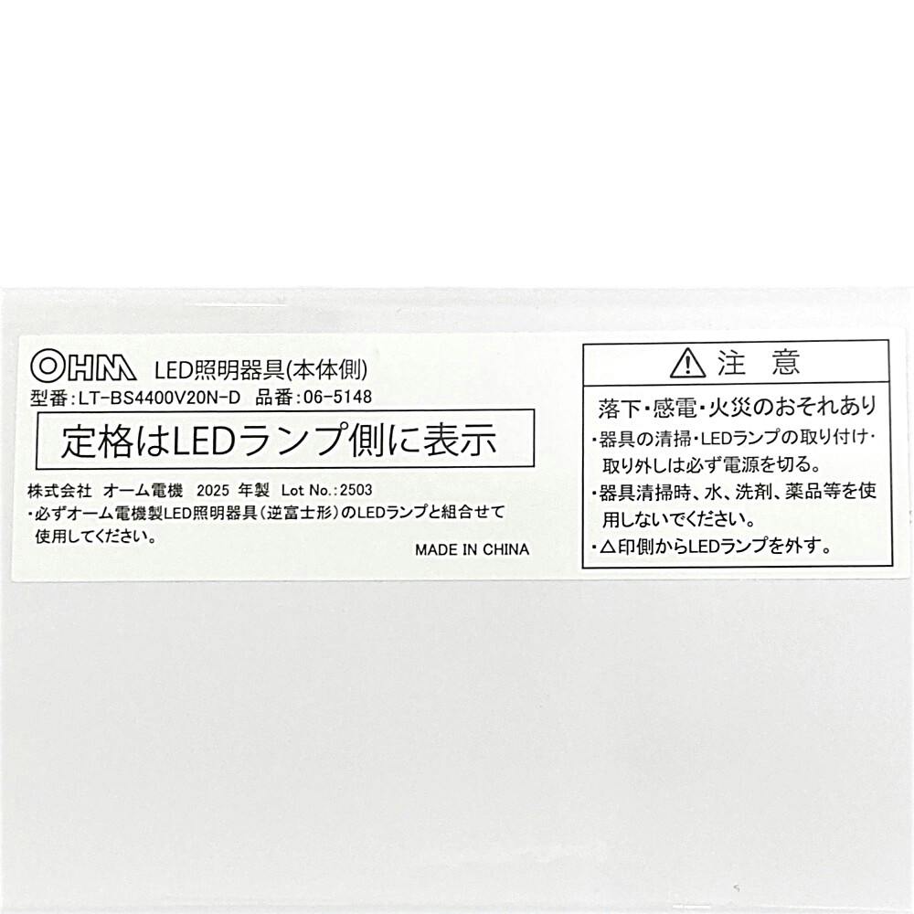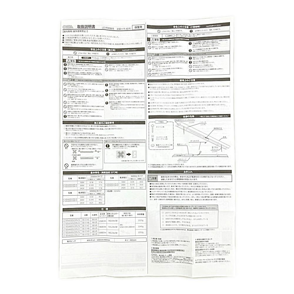 LEDベースライト 逆富士形 40形 4600lm 昼光色 LT-BS4400V20N-D 06-5148