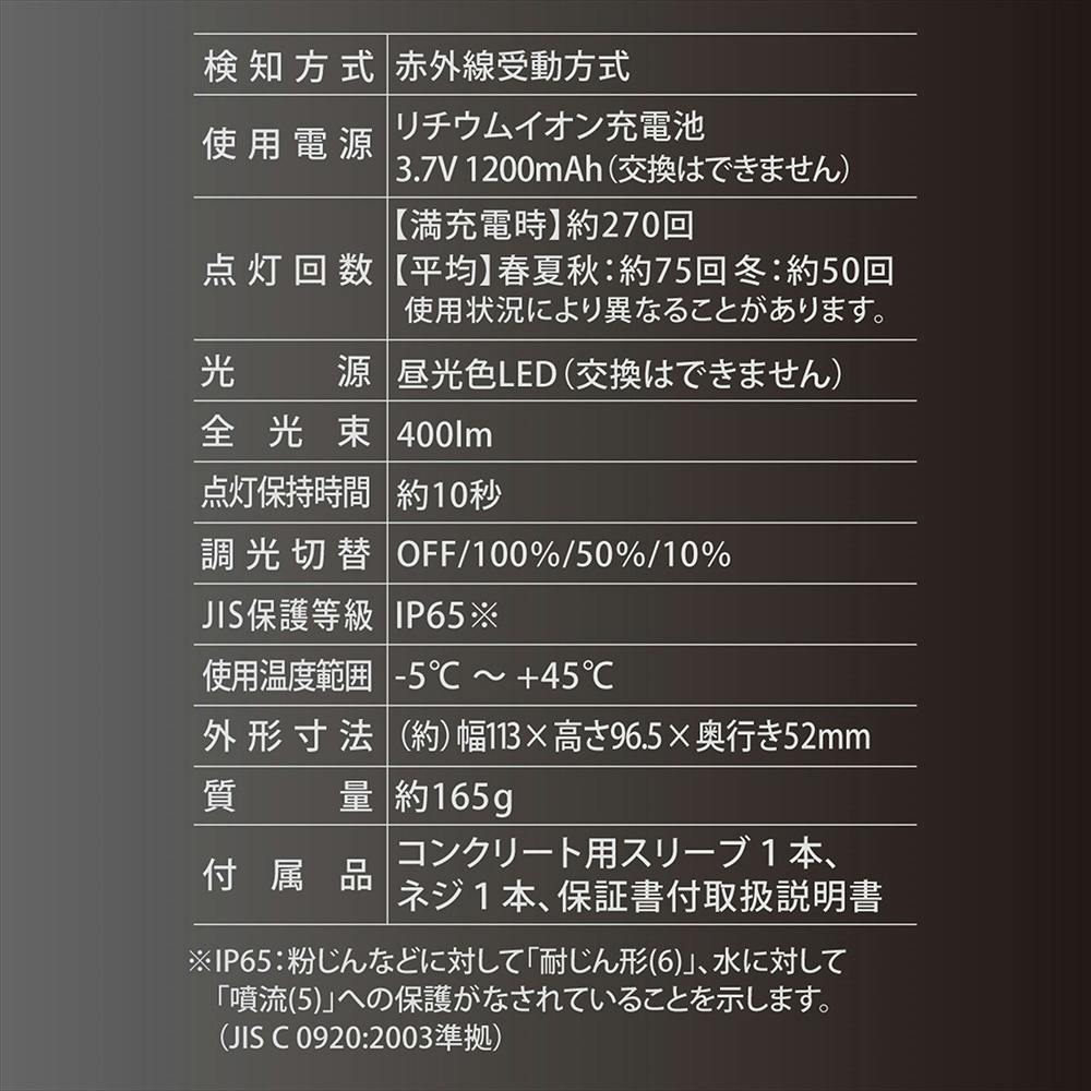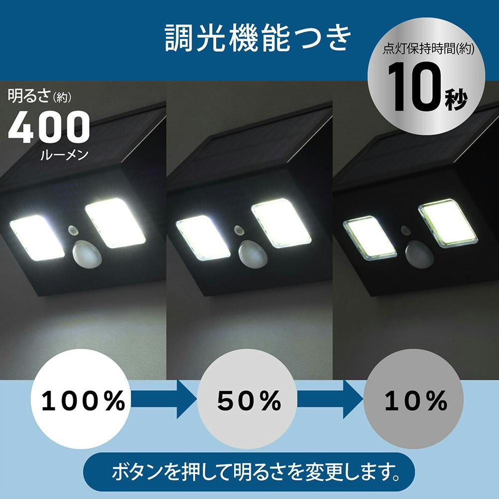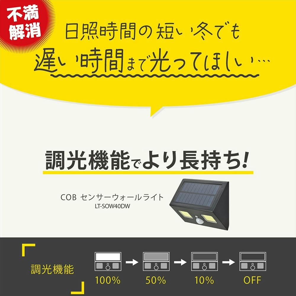 COBセンサーウォールライト ソーラー式 400ルーメン LT-SOW40DW 防犯 調光切替 ソーラー発電式人感センサーライト 赤外線センサー IP65