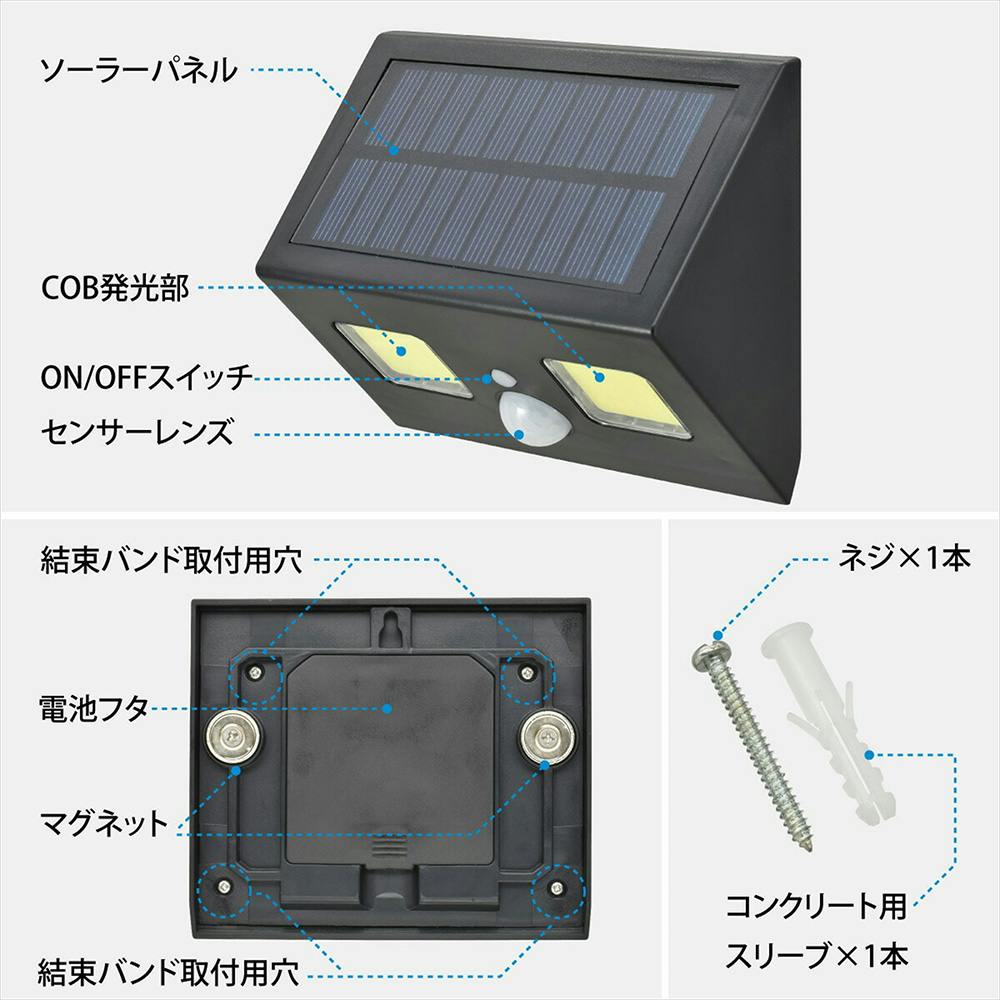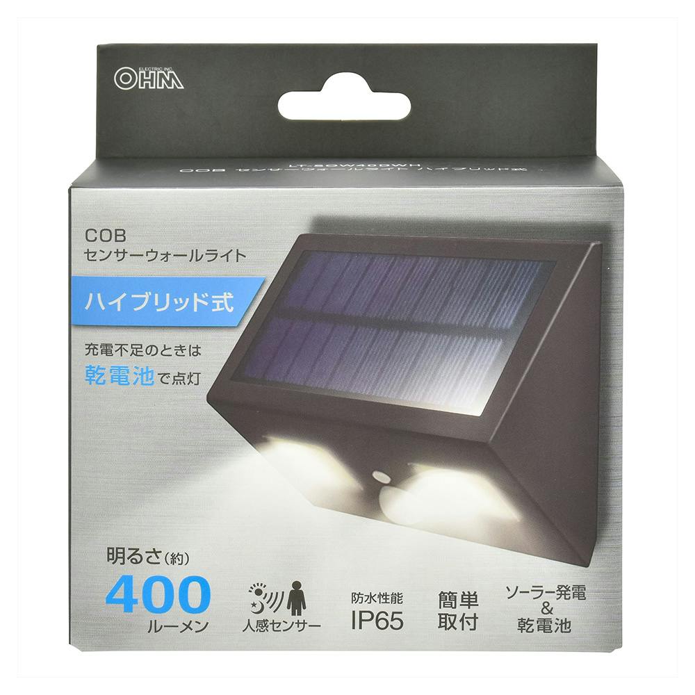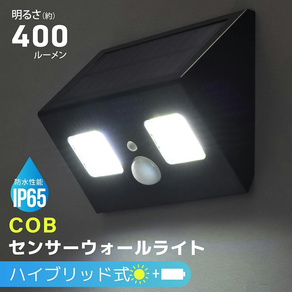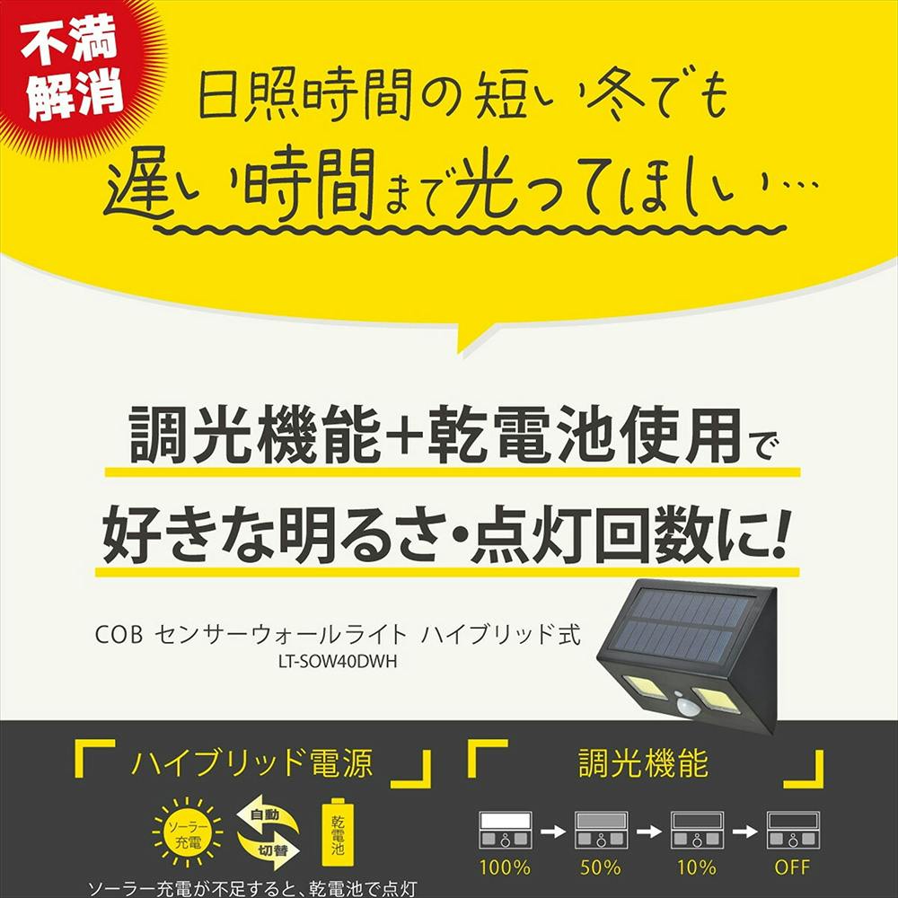 COBセンサーウォールライト ハイブリッド式 400ルーメン LT-SOW40DWH 防犯 調光切替 ソーラー発電式人感センサーライト 赤外線センサー IP65