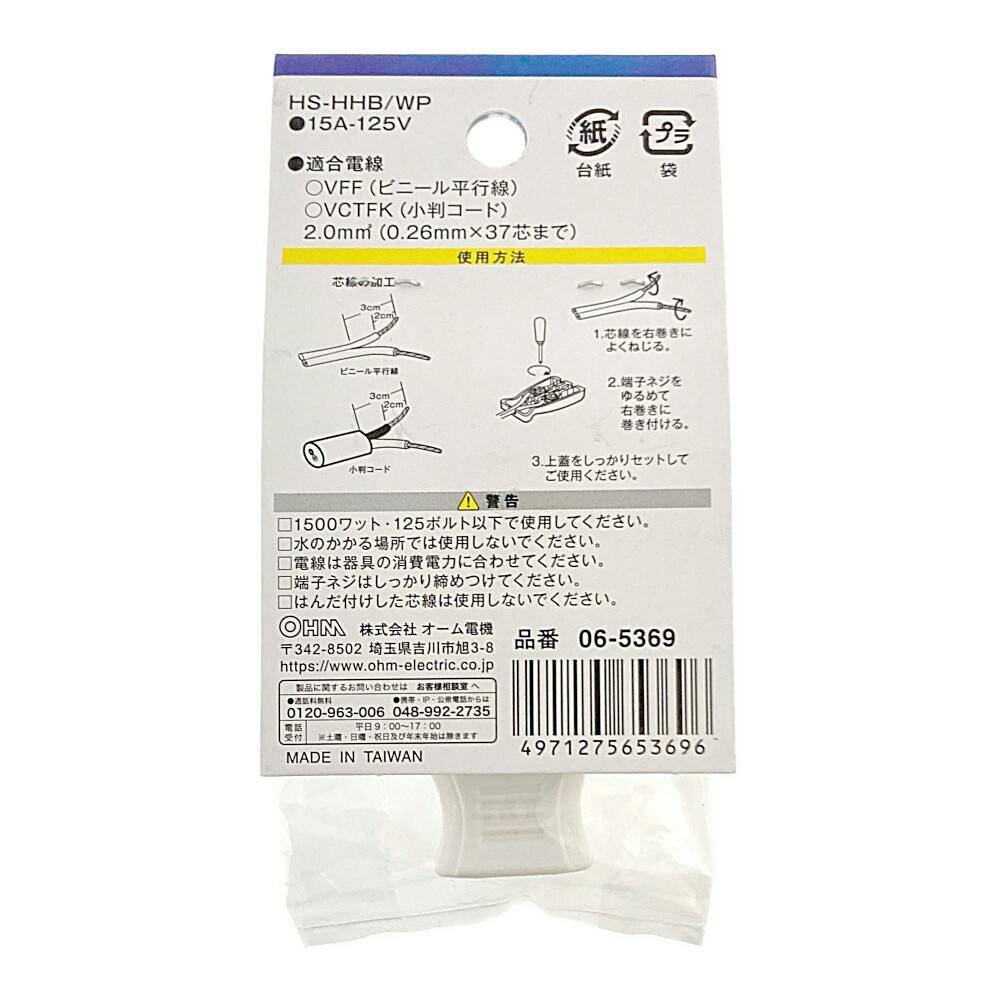 補修用 差込みボディ ホワイト HS-HHHB/WP 06-5369