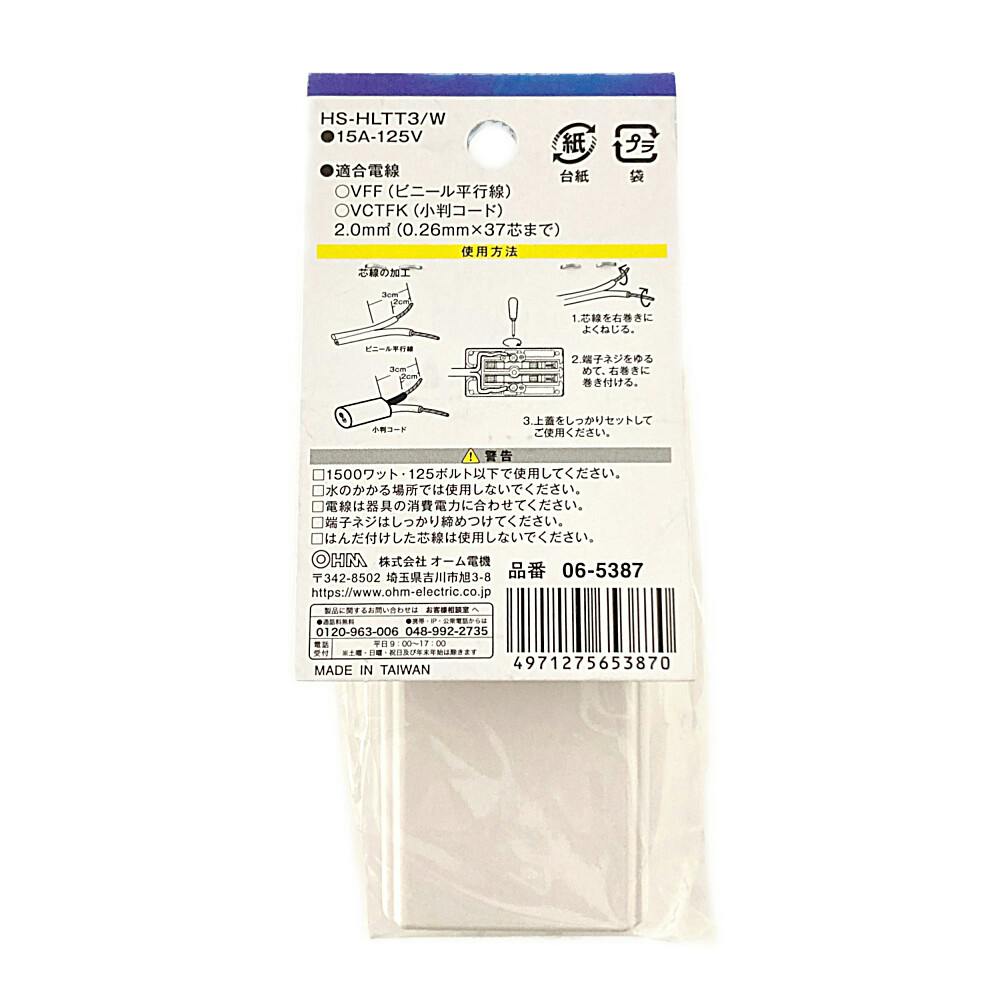 補修用 3口テーブルタップ ホワイト HS-HLTT3/W 06-5387