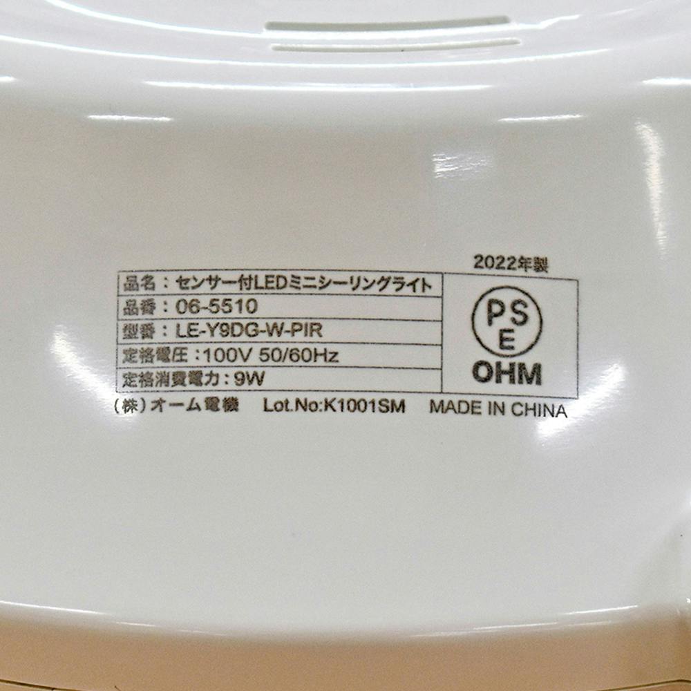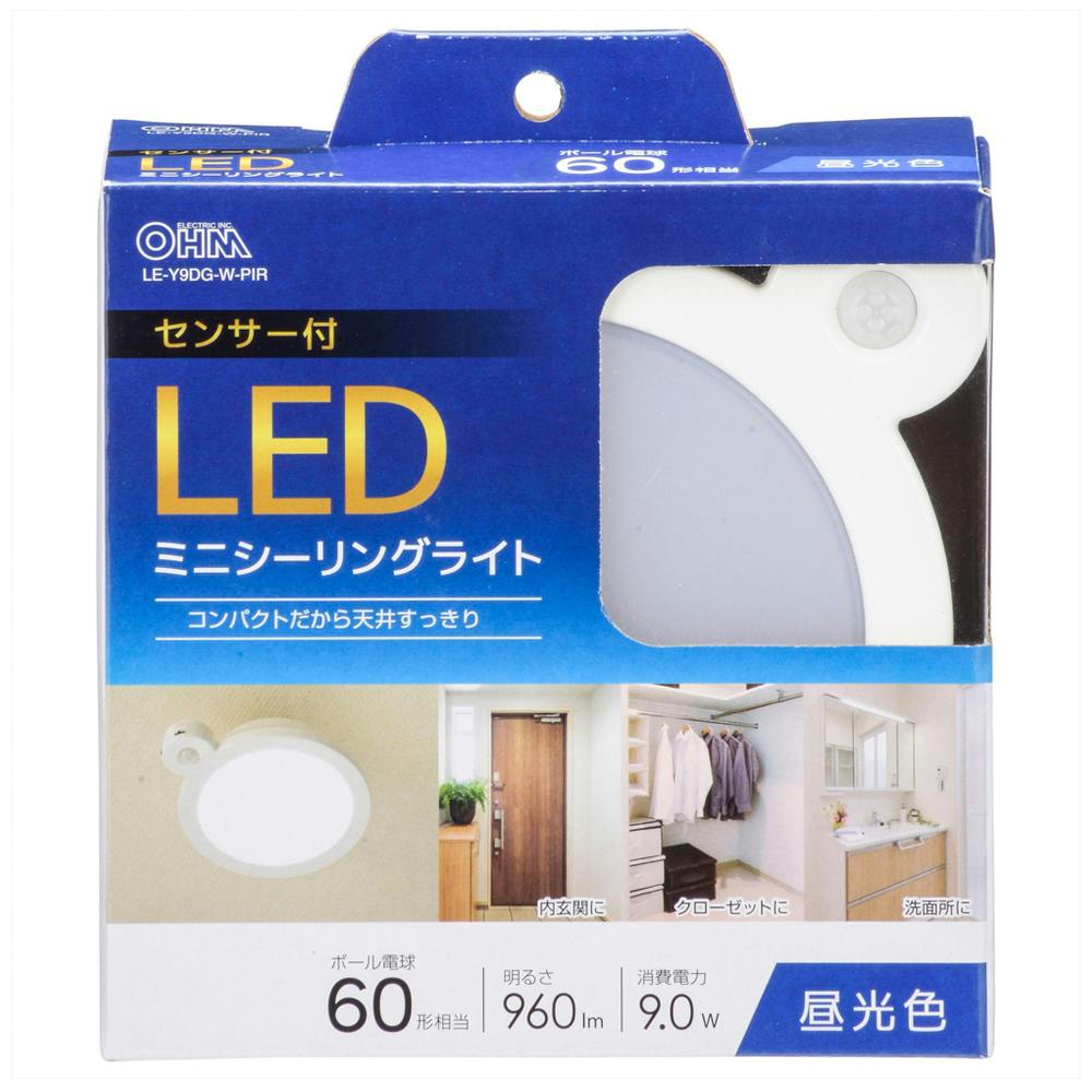 LEDミニシーリングライト センサー付き 60形 960ルーメン 昼光色 LE-Y9DG-W-PIR