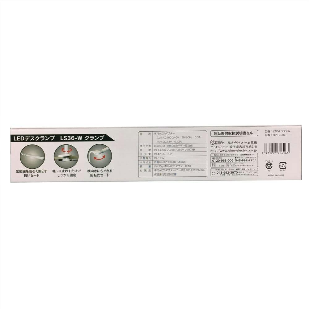 LEDデスクランプ クランプ ホワイト LTC-LS36-W 07-8616