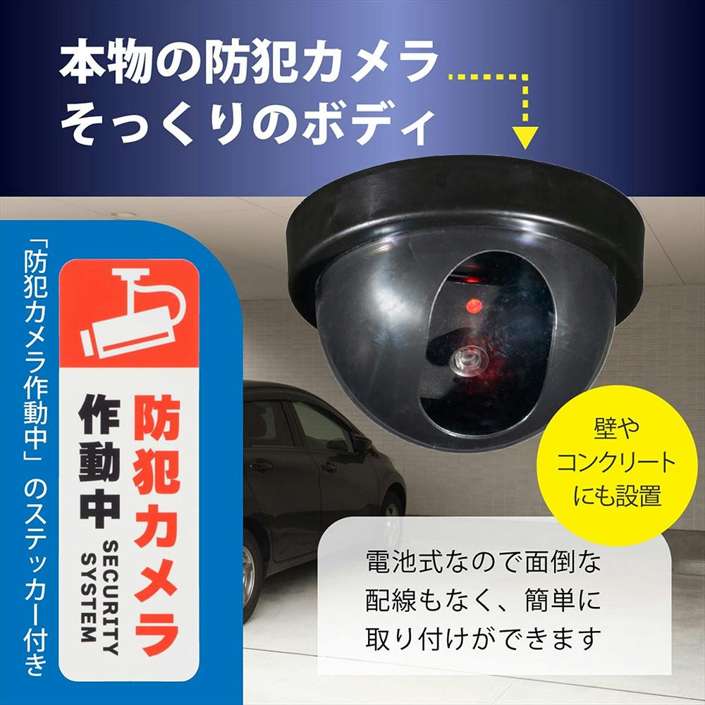 赤色LEDランプ24時間常時点滅タイプなので、威嚇効果があります、本物の防犯カメラそっくりのボディを採用、