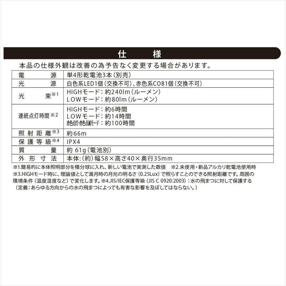 LOW/HIGHの2段階調光 、赤色灯と赤点滅機能付き