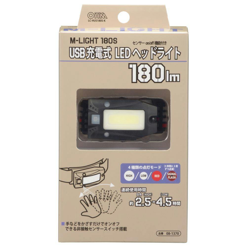 LEDヘッドライト USB充電式 180ルーメン LC-HUS180S-K