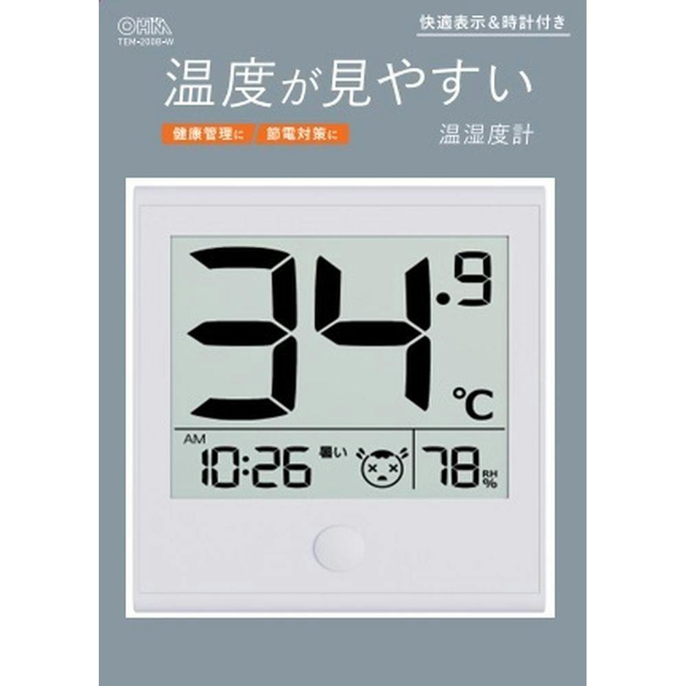 温度が見やすい温湿度計 快適表示付き ホワイト TEM-200B-W