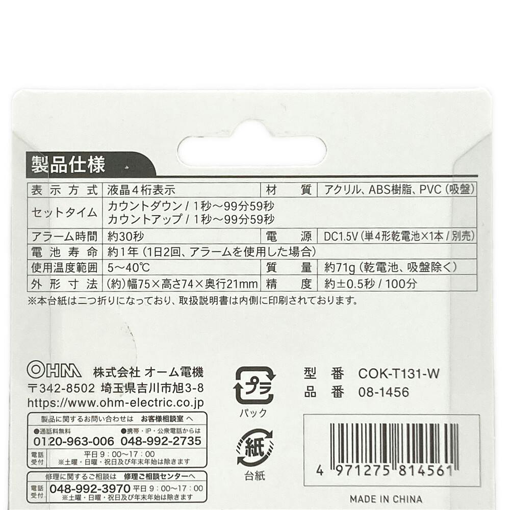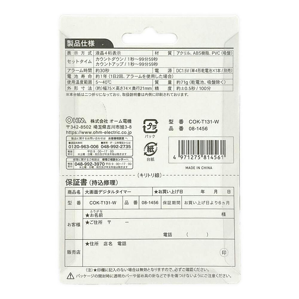大画面デジタルタイマー ホワイト COK-T131-W