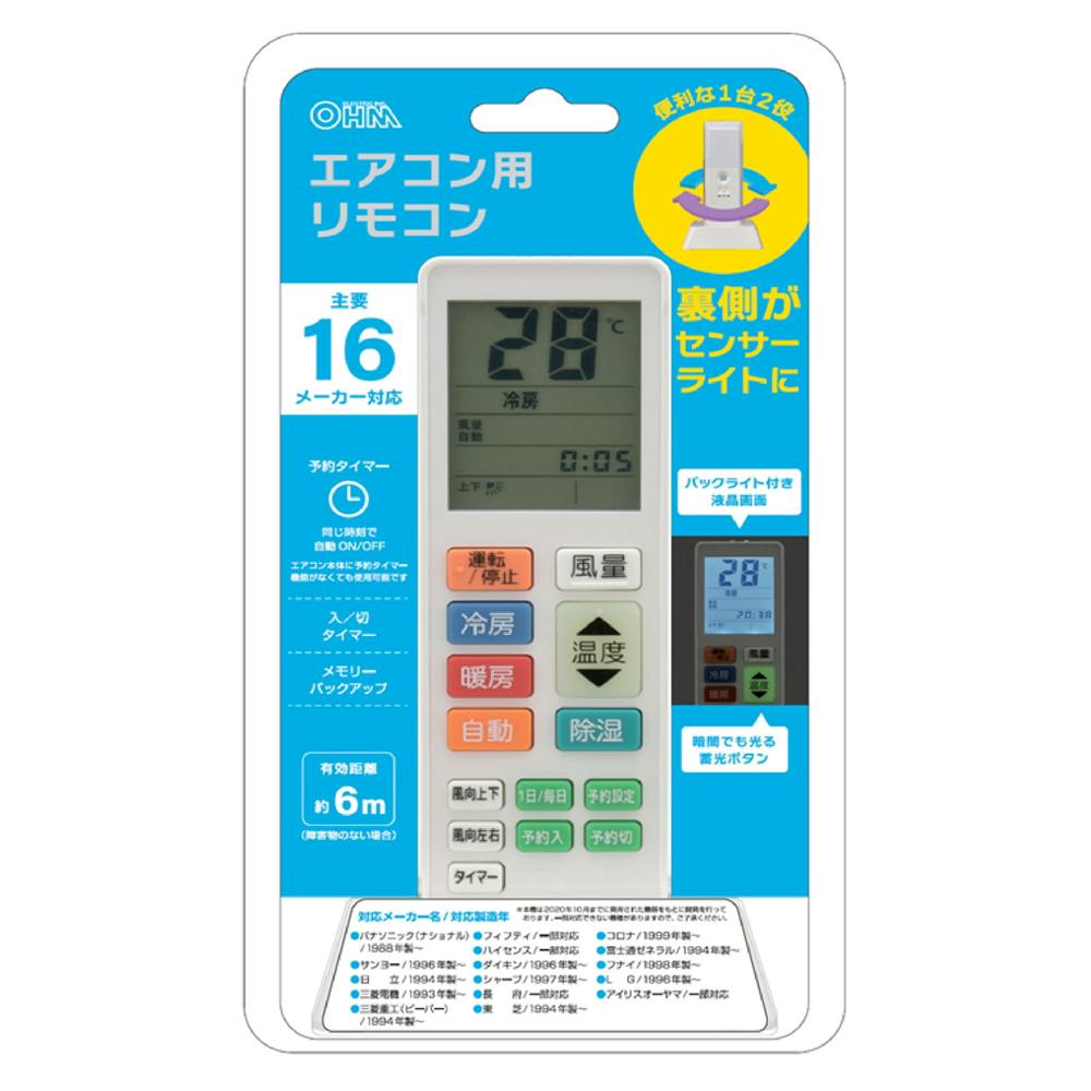 ●主要16メーカーに対応●表面はエアコンリモコン、裏面は明暗+人感センサーライトの1台2役