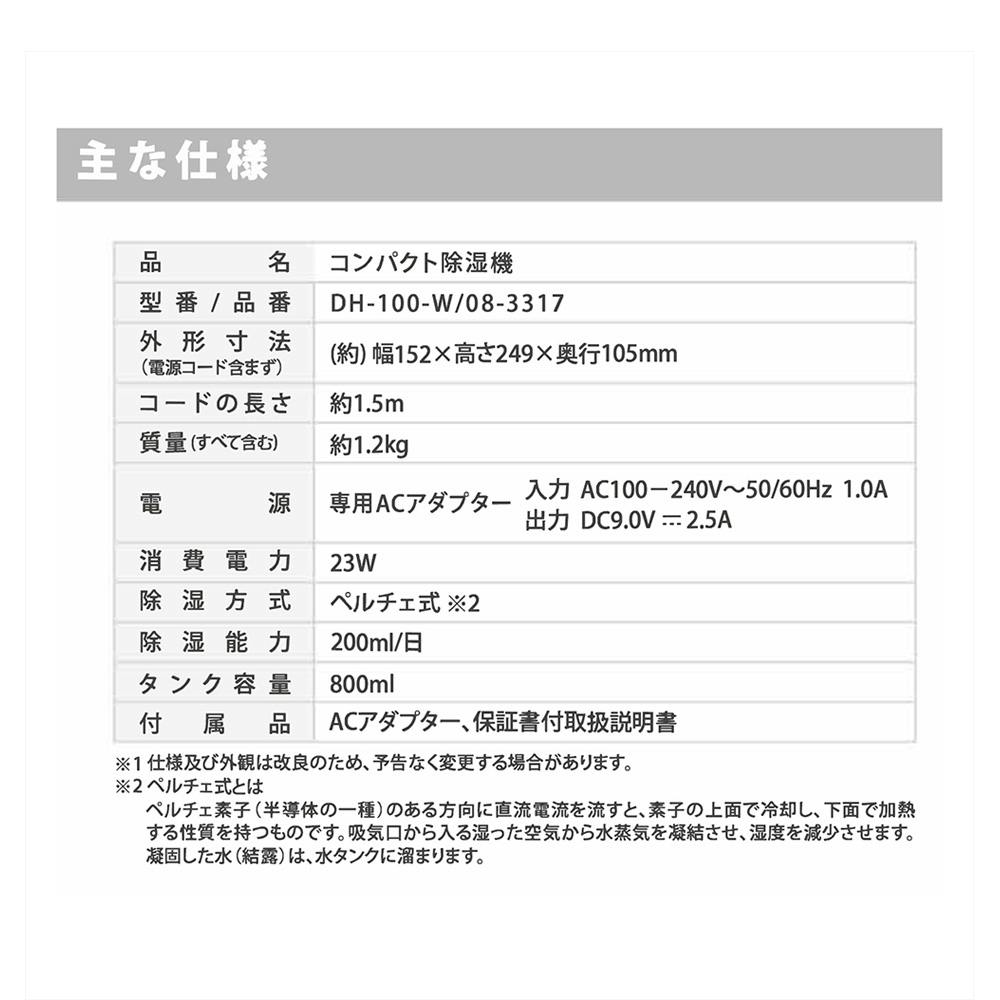 コンパクト除湿機 ペルチェ式 DH-100-W