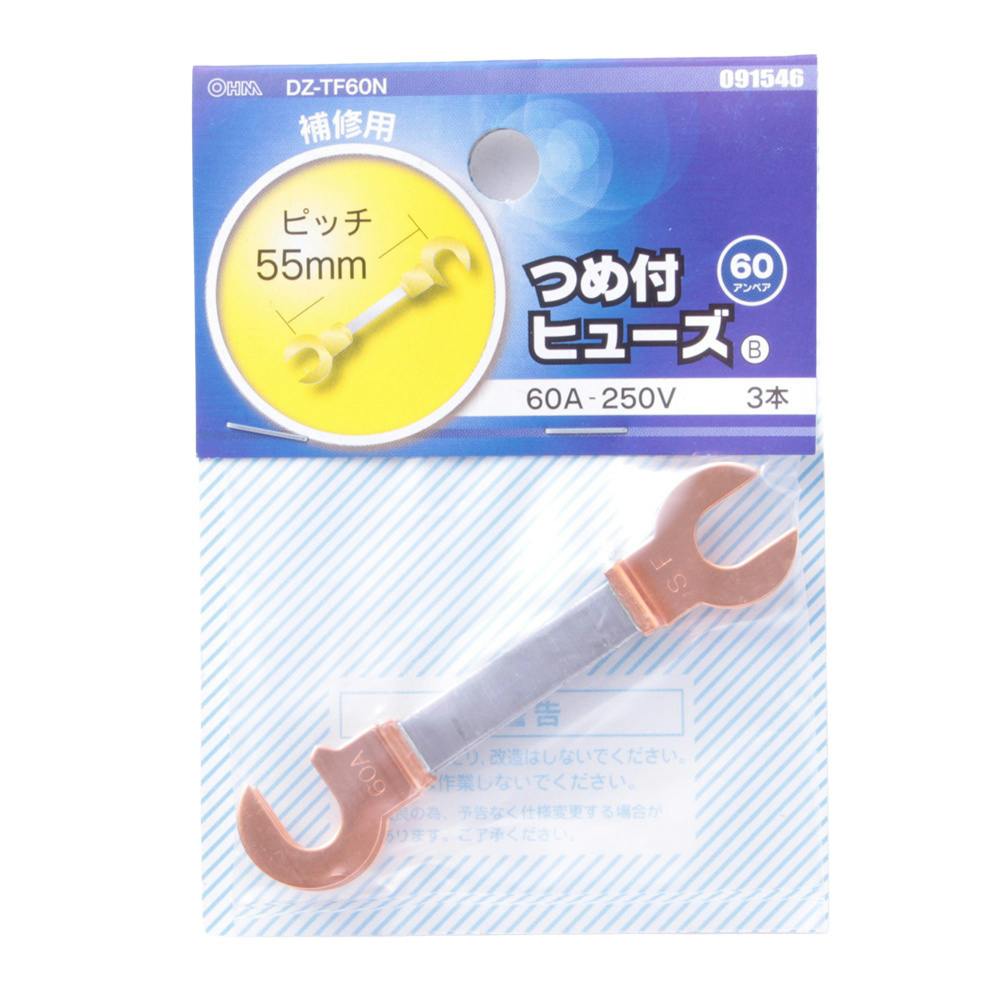 つめ付きヒューズ 60A-250V 補修用 DZ-TF60N 09-1546 3本入