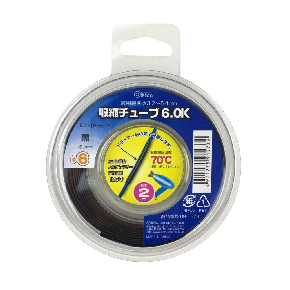収縮チューブ 6.0mm 2m 黒 DZ-TR60/K 09-1573