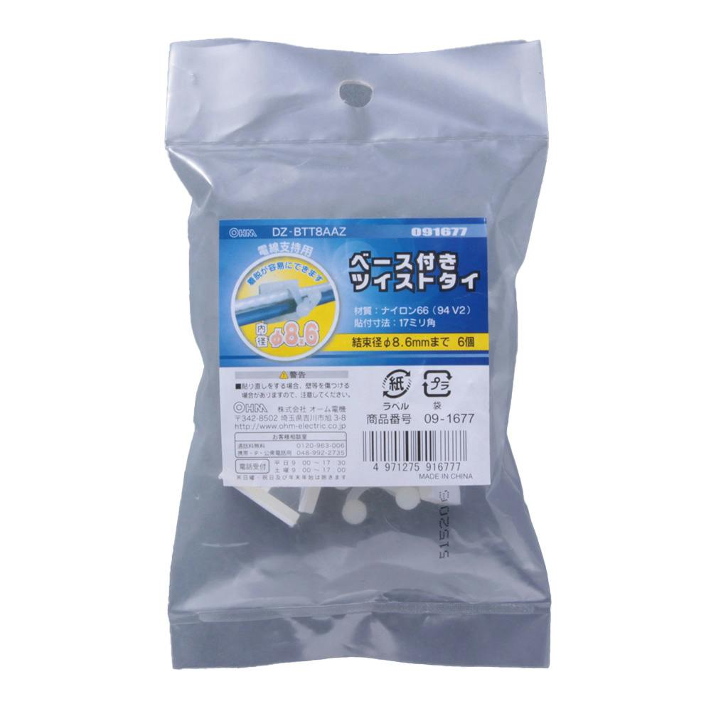 • ベース付ツイストタイ 白 内径φ8.6mm DZ-BTT8AAZ 09-1677 6個入
