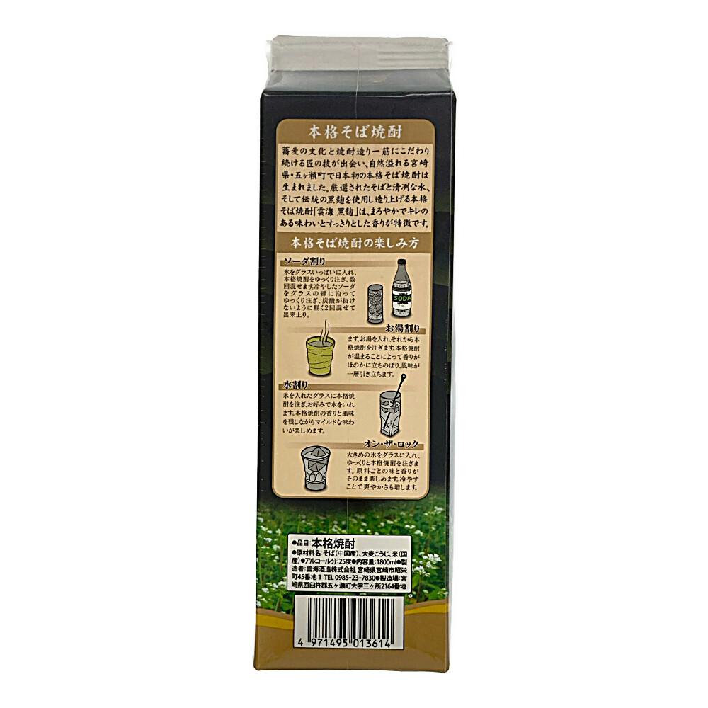 雲海 黒麹 そば 25゜ 1.8Lパック