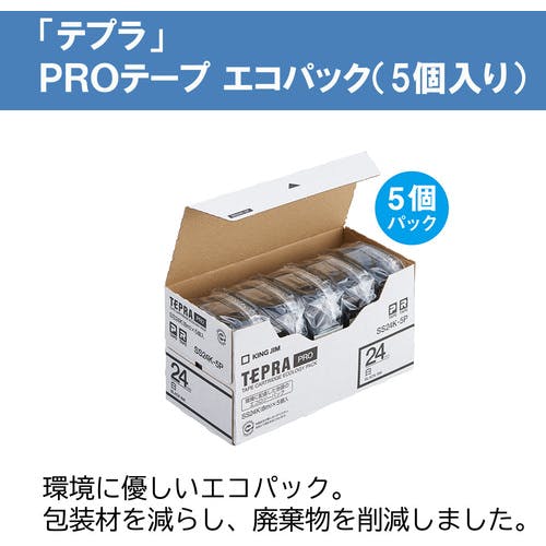 【CAINZ-DASH】キングジム 【純正】「テプラ」PROテープ 24mm エコパック(5個入り)/白ラベル/黒文字 長さ8m SS24K-5P【別送品】
