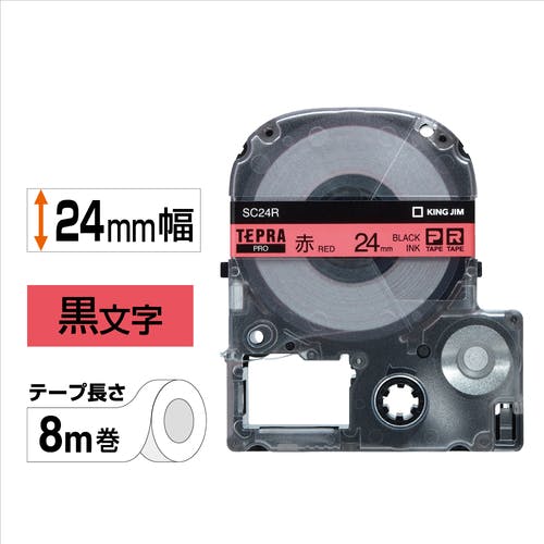 【CAINZ-DASH】キングジム 【純正】「テプラ」PROテープ 24mm 赤ラベル/黒文字 長さ8m SC24R【別送品】