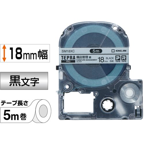 • 【CAINZ-DASH】キングジム 【純正】「テプラ」PROテープ 18mm 備品管理ラベル/銀ラベル/黒文字 長さ5m SM18XC【別送品】