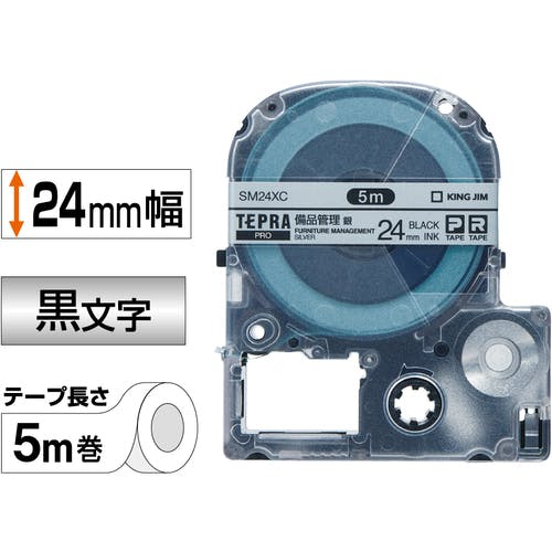 【CAINZ-DASH】キングジム 【純正】「テプラ」PROテープ 24mm 備品管理ラベル/銀ラベル/黒文字 長さ5m SM24XC【別送品】