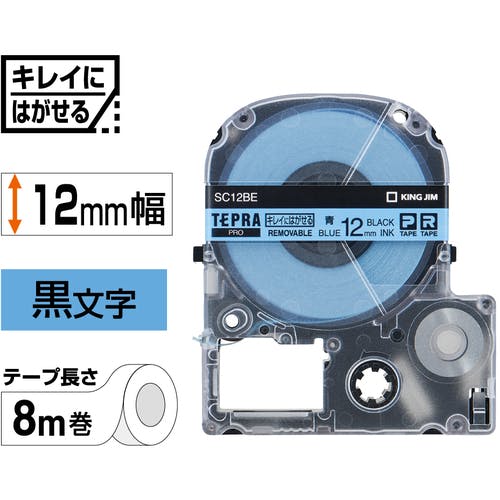 • 【CAINZ-DASH】キングジム 【純正】「テプラ」PROテープ 12mm キレイにはがせるラベル/青ラベル/黒文字 長さ8m SC12BE【別送品】