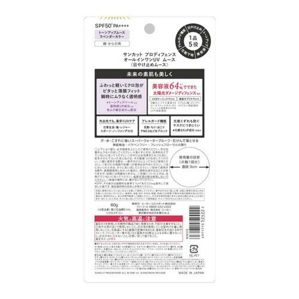• コーセーコスメポート サンカット プロディフェンス オールインワンUV ムース PF50+ PA++++ 60g