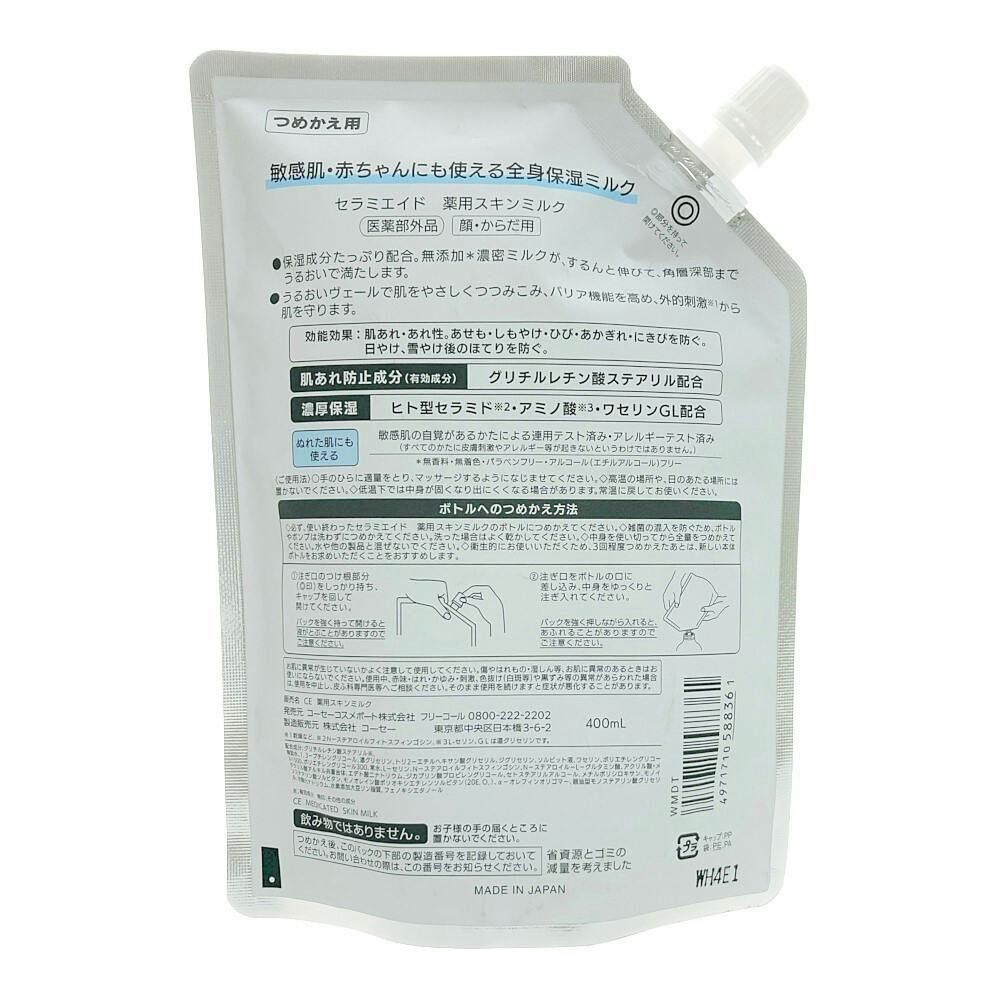 ボトルへのつめかえ方法/●必ず、使い終わったセラミエイド薬用スキンミルクのボトルにつめかえてください。●雑菌の混入を防ぐため、ボトルやポンプは洗わずにつめかえてください。洗った場合はよく乾かしてください。など