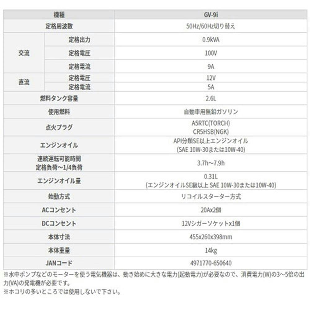 インバーター発電機 GV-9I