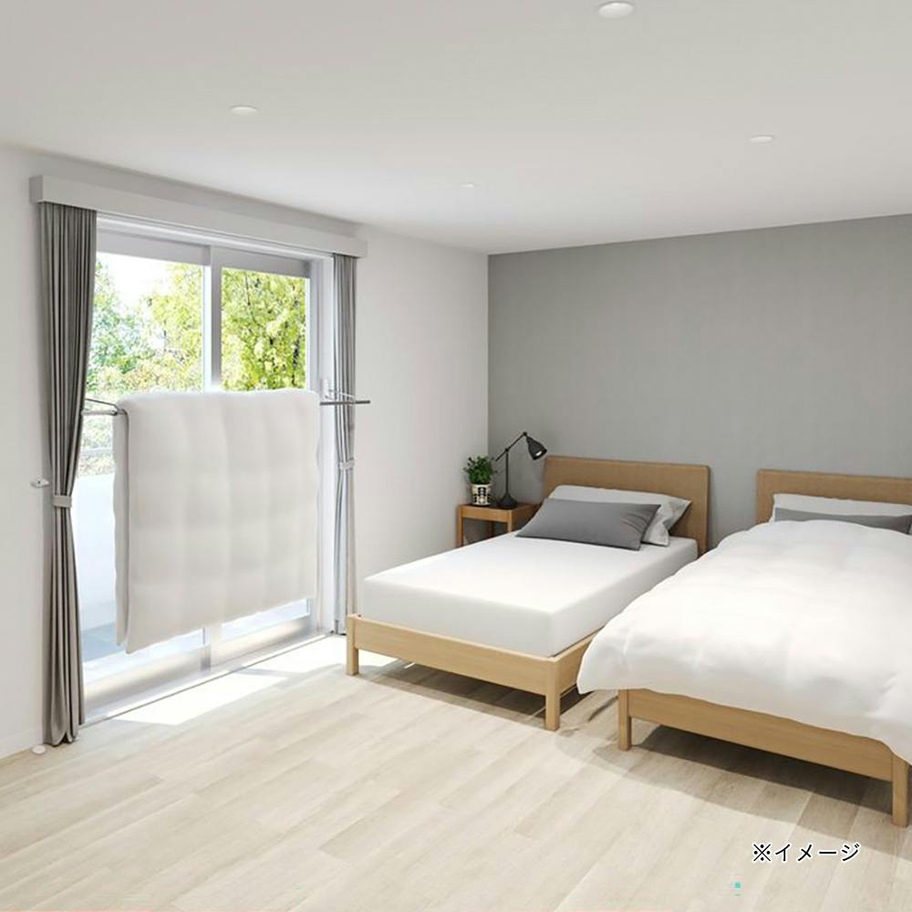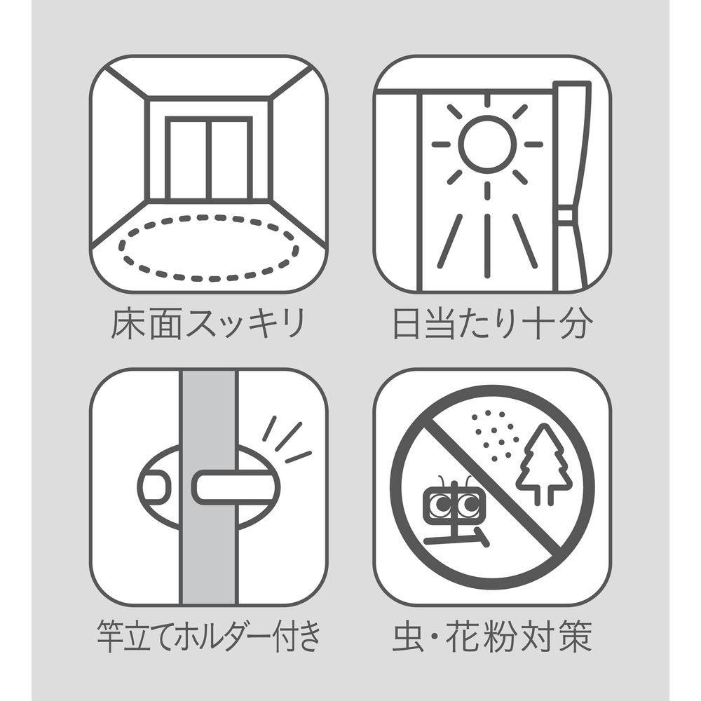 ●室内用。●窓枠取付け。●日当たりのよい室内で干せる。●床面スッキリでお掃除楽々。●虫・花粉対策。●竿立てホルダー付き。
