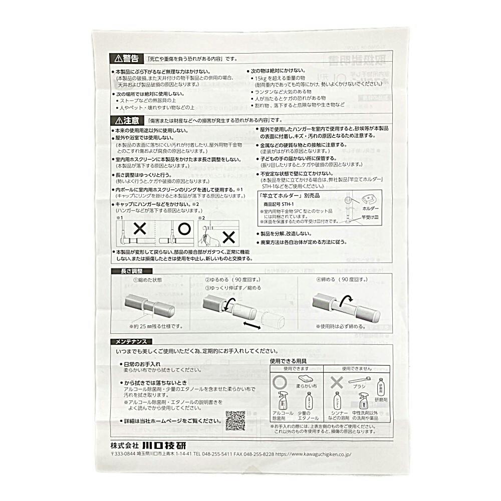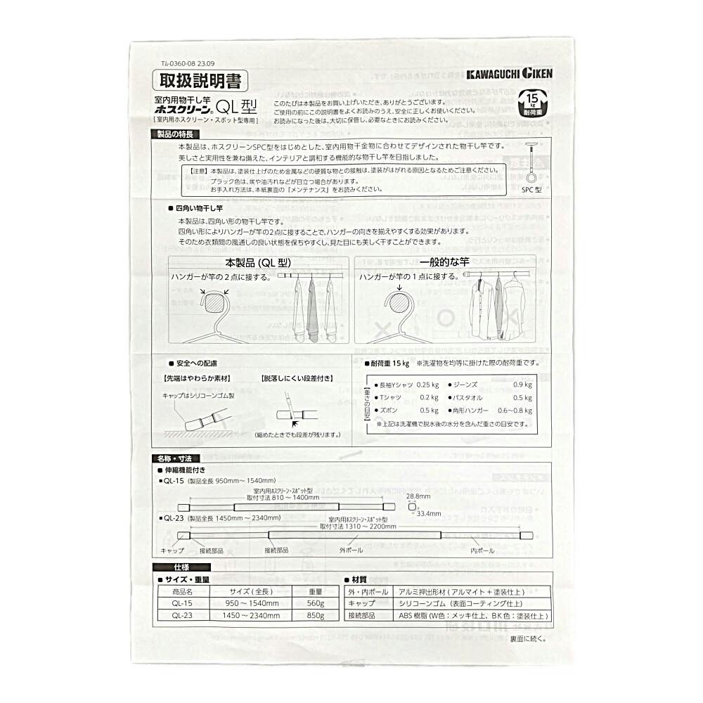 ホスクリーン 室内用物干し竿 QL型 ホワイト QL-23-W