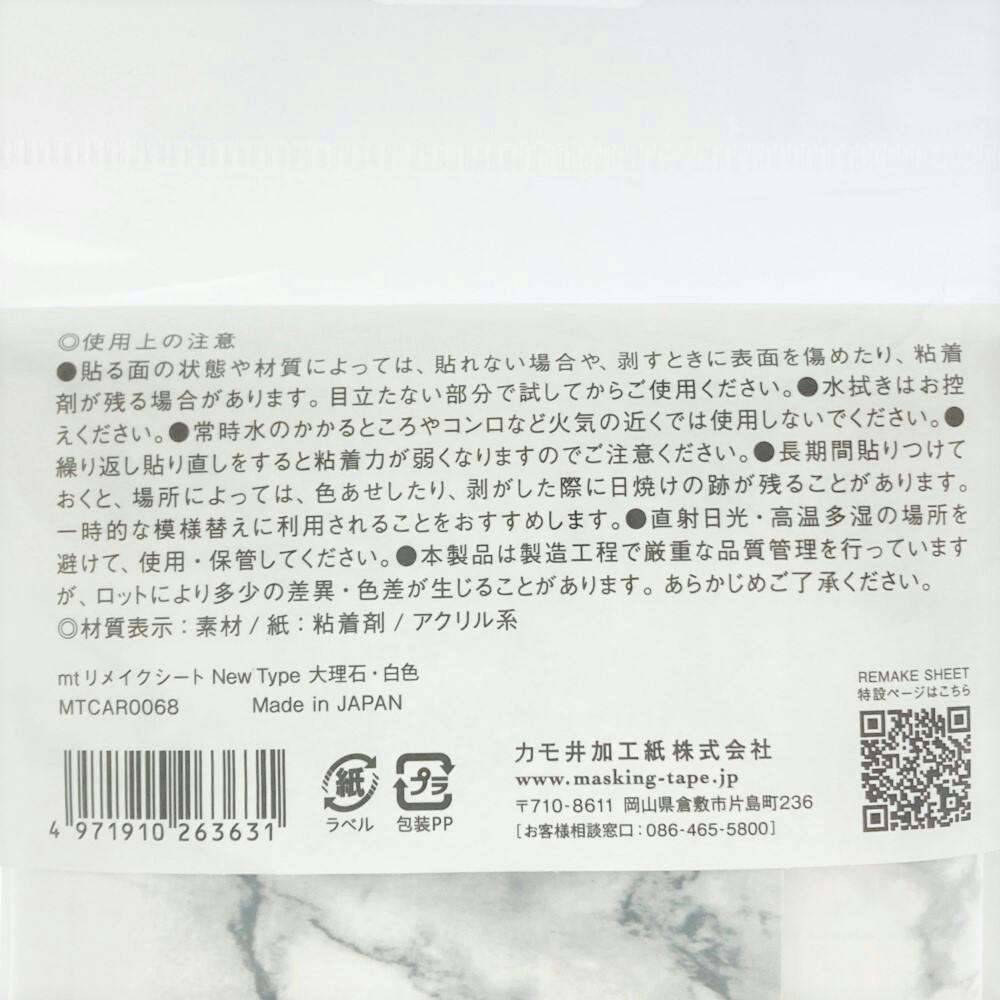 カモ井加工紙 mt リメイクシート New Type 大理石 白色 MTCAR0068