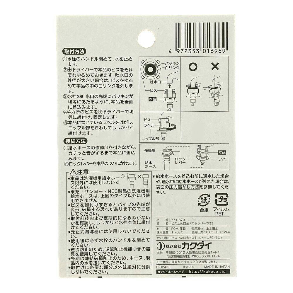 洗濯機用ビス止め口金 給水ホースワンタッチ接続 ストッパー付き 771-370