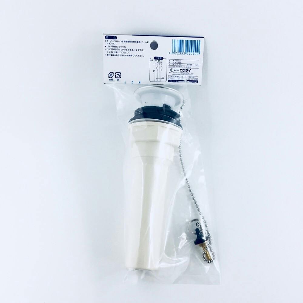 オーバーフローつき洗面器用の排水金具(テール管付き)です。