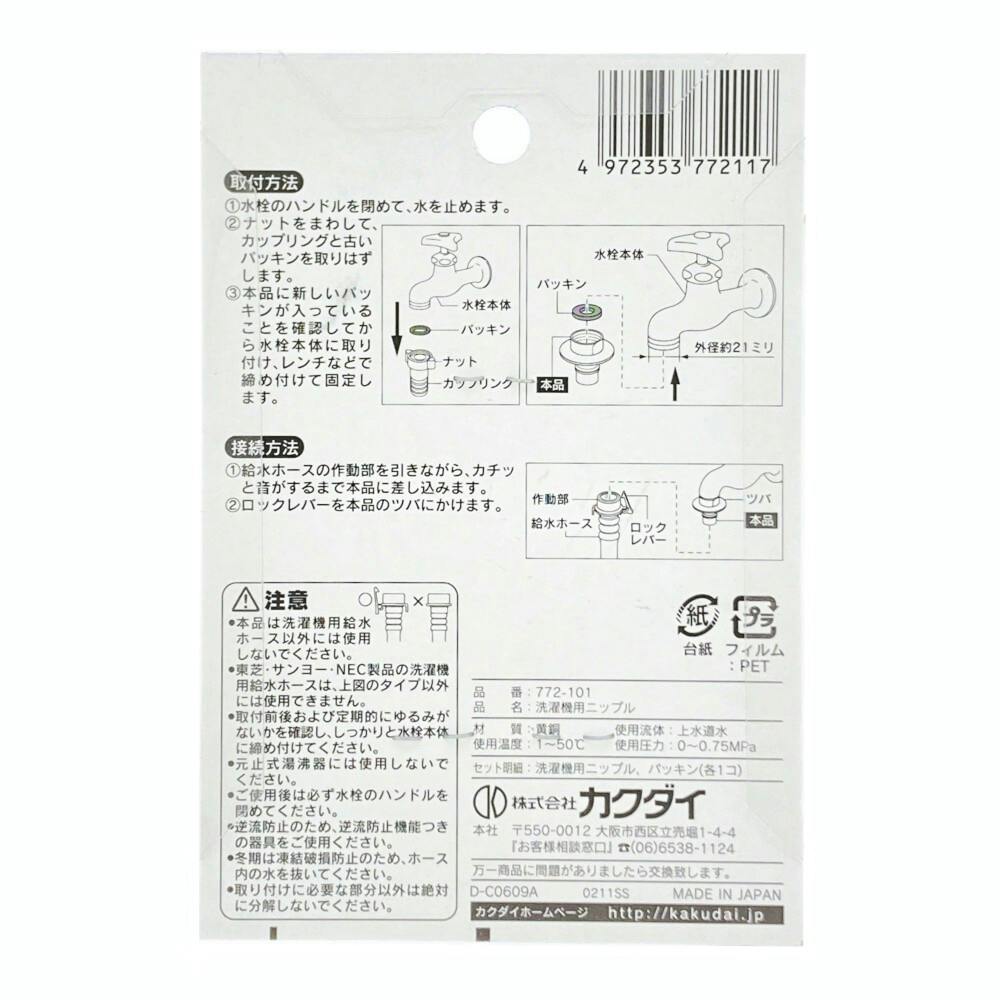 洗濯機用ニップル 給水ホースワンタッチ接続 772-101