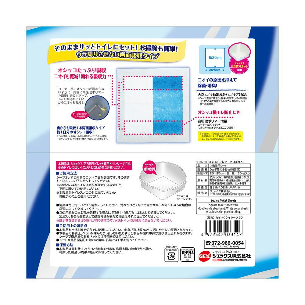 サッとそのままセット!お掃除も簡単!ウラ周りさせない両面吸収タイプの正方形ラビレット専用トイレシーツ。