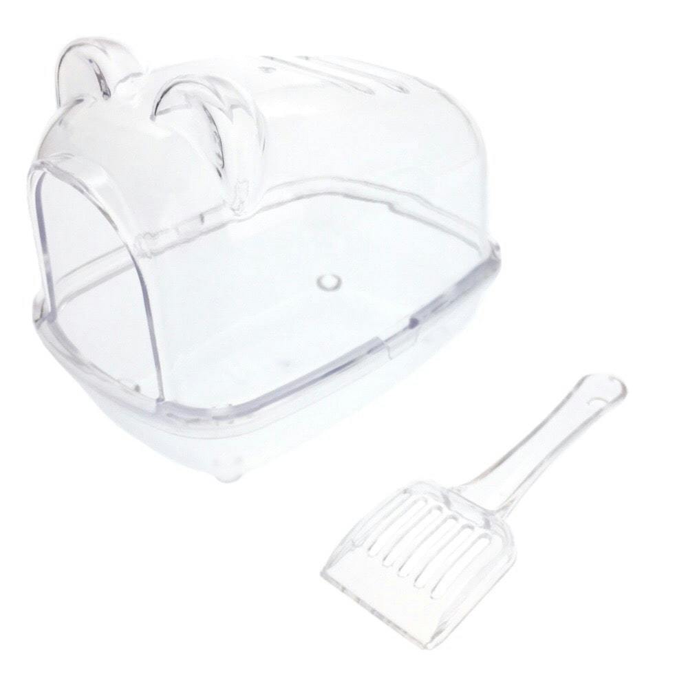 トイレ砂が入れやすい少し深めの底トレー中の様子がよく見えるクリアカバー出入りしやすい広い入口ハムスター全種対応のゆったりサイズ。上部のクリアカバーが外れるので丸洗いできてお手入れも簡単。スコップ付き。