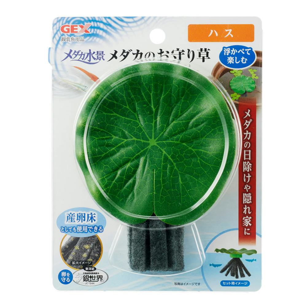 メダカ鉢などに浮かべて楽しむ、本物みたいな浮き草メダカのために日除けや隠れ場所をつくり、メダカを守ります。親メダカが卵を産み付けられるスポンジ付きなので、産卵床としても使用できます。