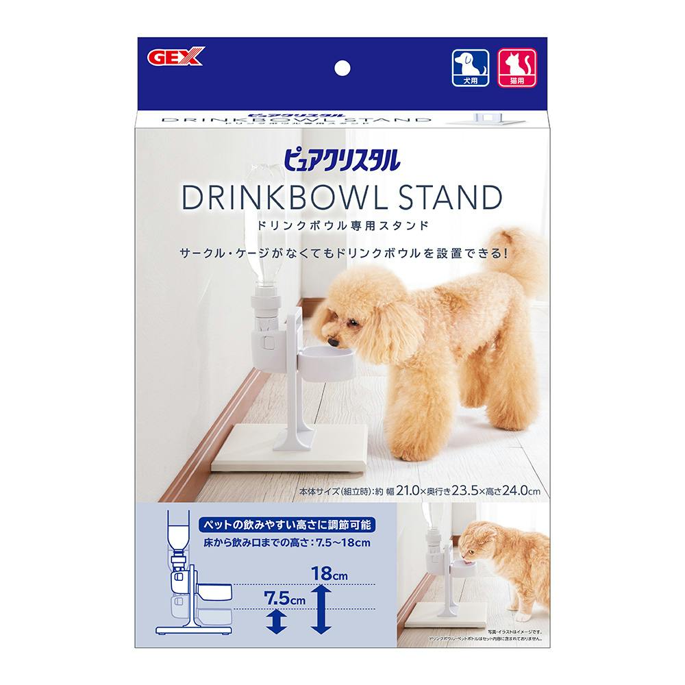 サークル・ケージがなくても、お部屋のどこでもドリンクボウルを設置できる、専用のスタンドです。(ノズルタイプの給水器にはご使用いただけません。)ペットの身体の大きさに合わせて、自然な姿勢で飲める高さに調節できます。(床から飲み口までの高さ:7.5-18cm)