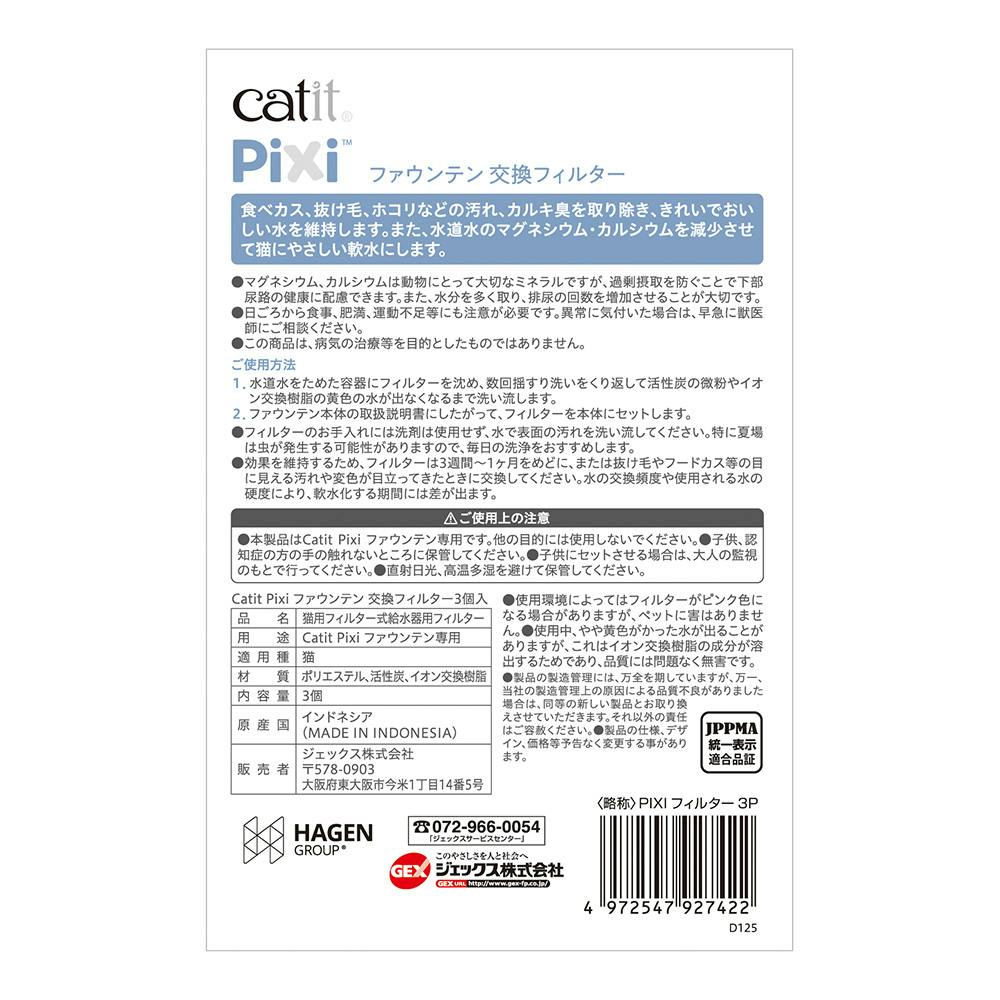 1.水道水をためた容器にフィルターを沈め、数回揺すり洗いをくり返して活性炭の微粉やイオン交換樹脂の黄色の水が出なくなるまで洗い流します。2.ファウンテン本体の取扱説明書にしたがって、フィルターを本体にセットします。
