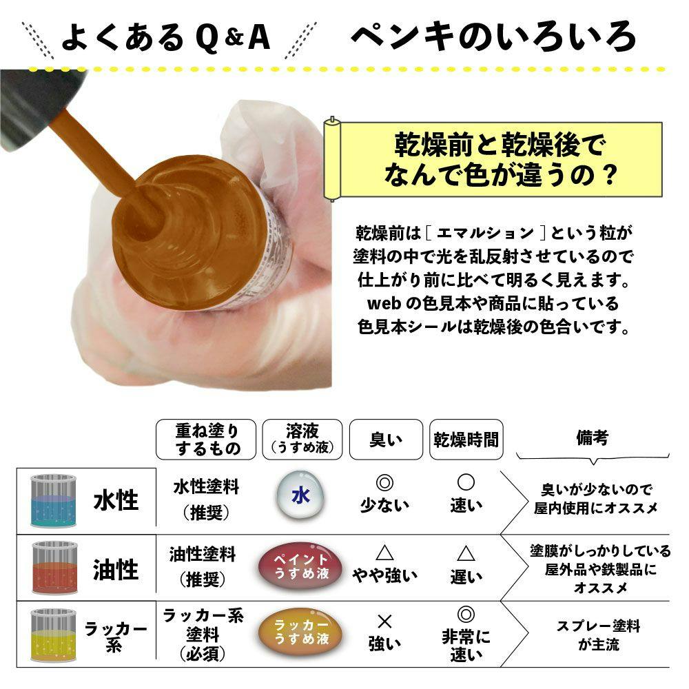 刷毛付きでそのまま手軽に塗れる「マニュキュアタイプ」だから補修・ホビーなどの部分塗りにぴったりです。エナメル調の美しいツヤに仕上がり、光沢が長期間持続する油性塗料です。 ※水性でも乾燥すると水で流れ落ちることはありません。