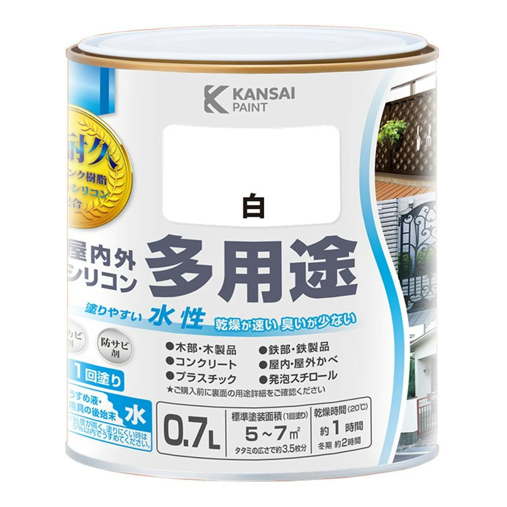 KANSAI PAINT 水性屋内外シリコン多用途塗料A 白 0.7L【別送品】