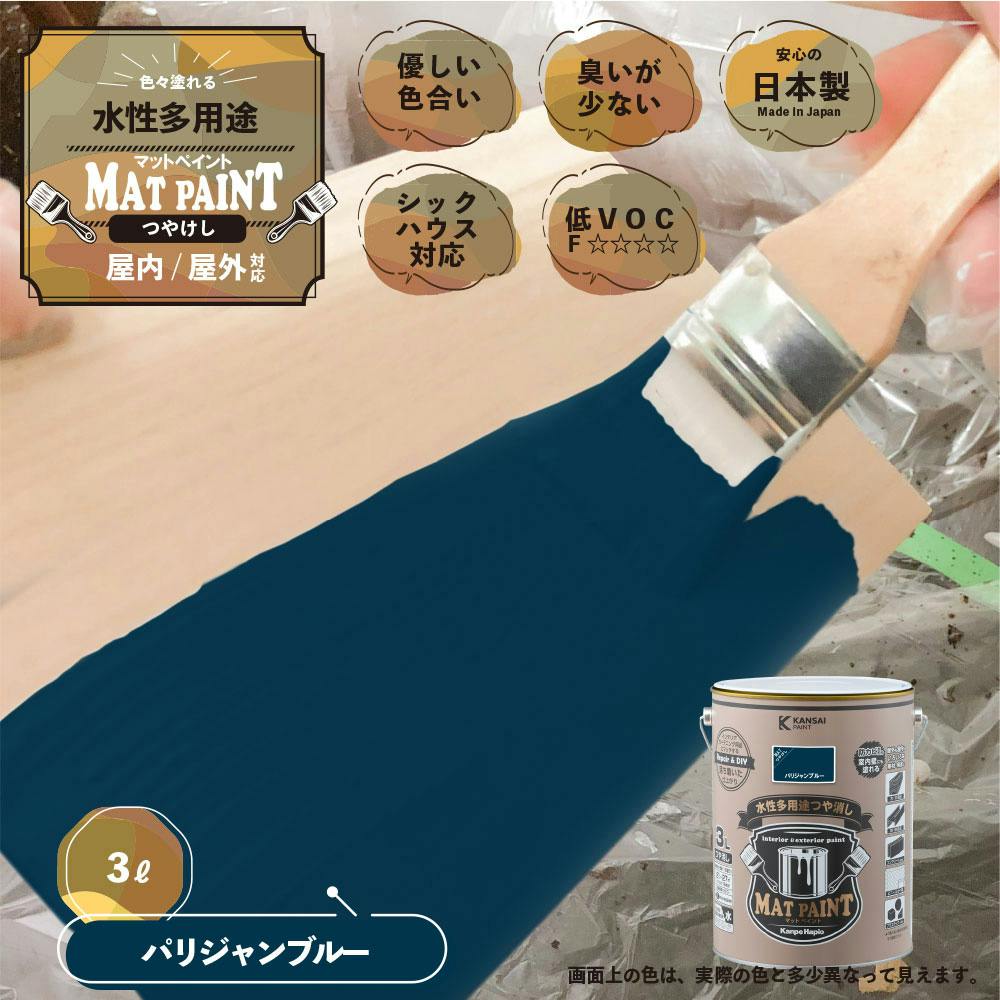 水性多用途つや消し マットペイント パリジャンブルー 3L