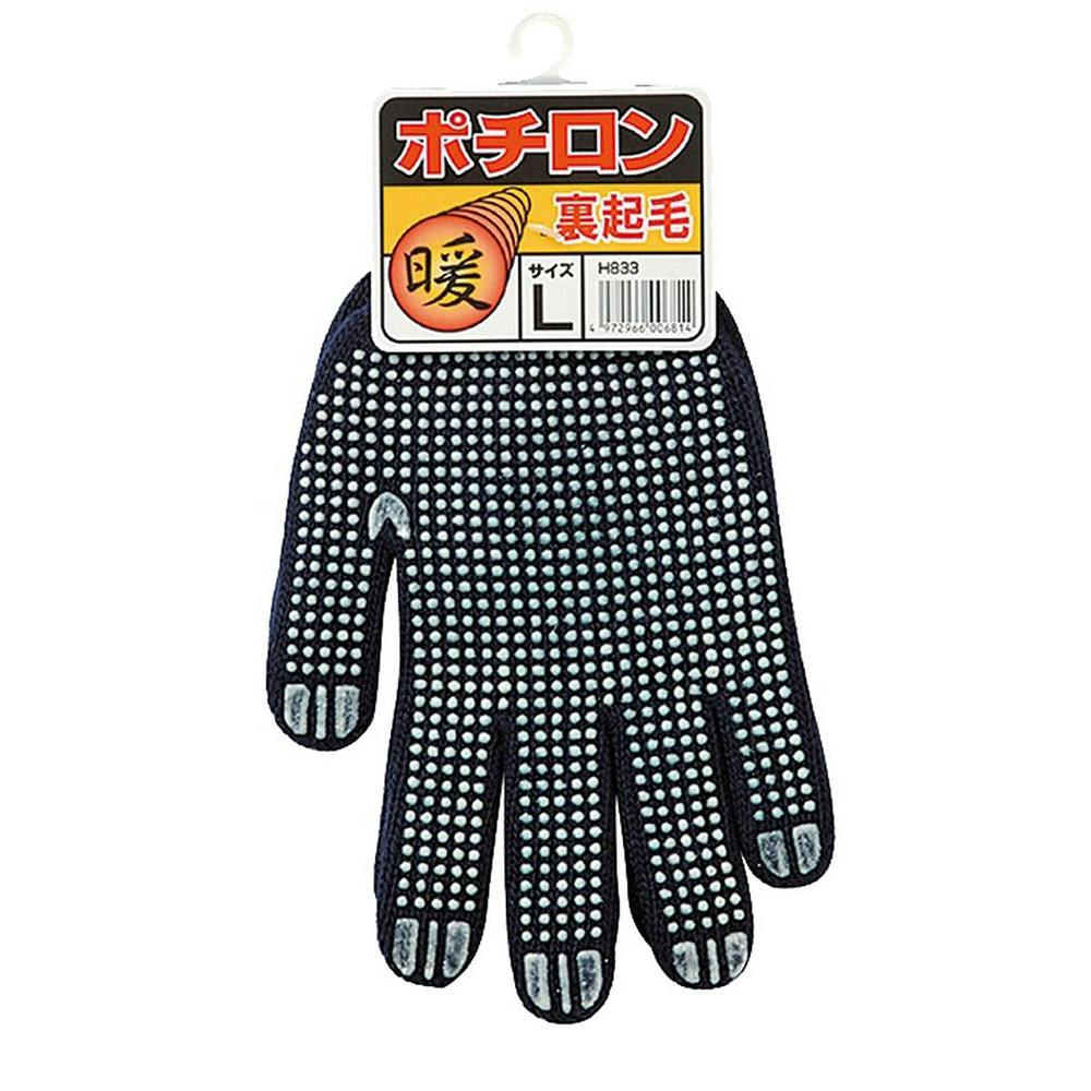 裏起毛された手袋に塩化ビニールの滑り止めが加工されています。
