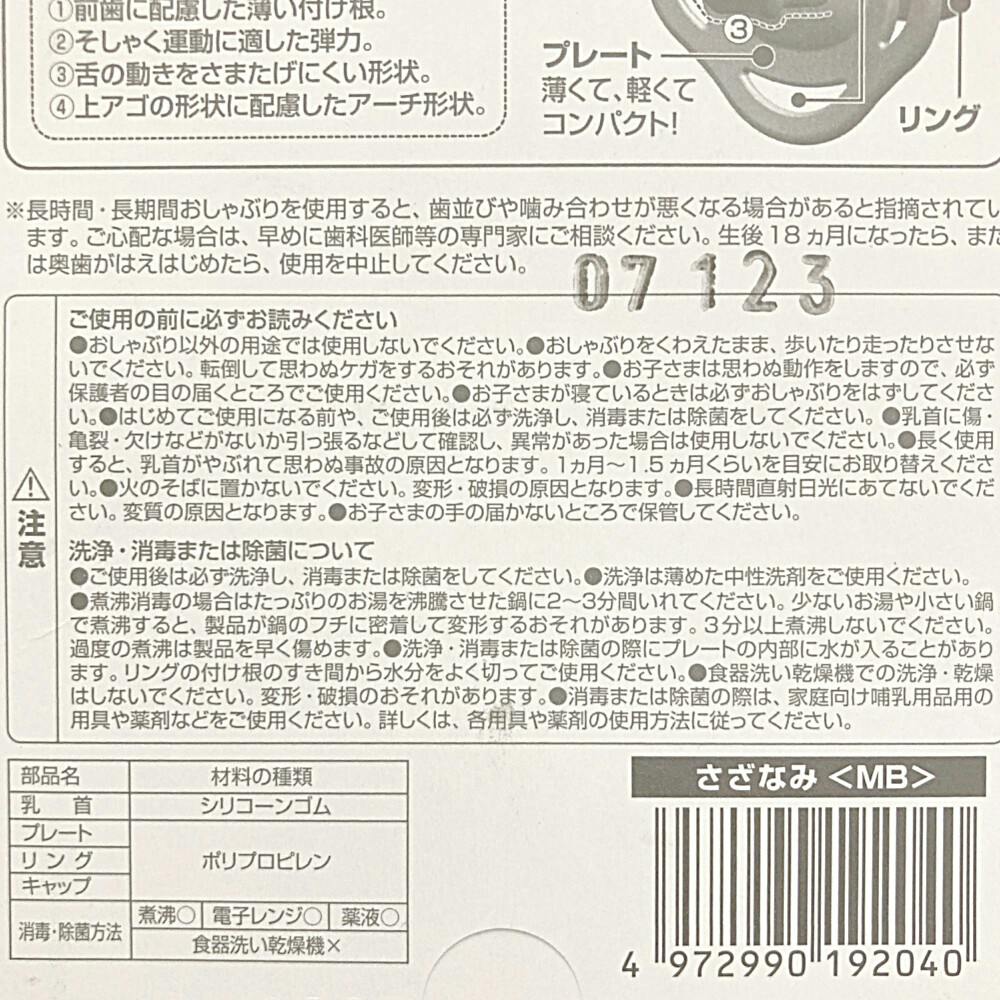 ●おしゃぶり以外の用途では使用しないでください。●おしゃぶりをくわえたまま、歩いたり走ったりさせないでください。転倒して思わぬケガをするおそれがあります。●お子さまは思わぬ動作をしますので、必ず保護者の目の届くところでご使用ください。