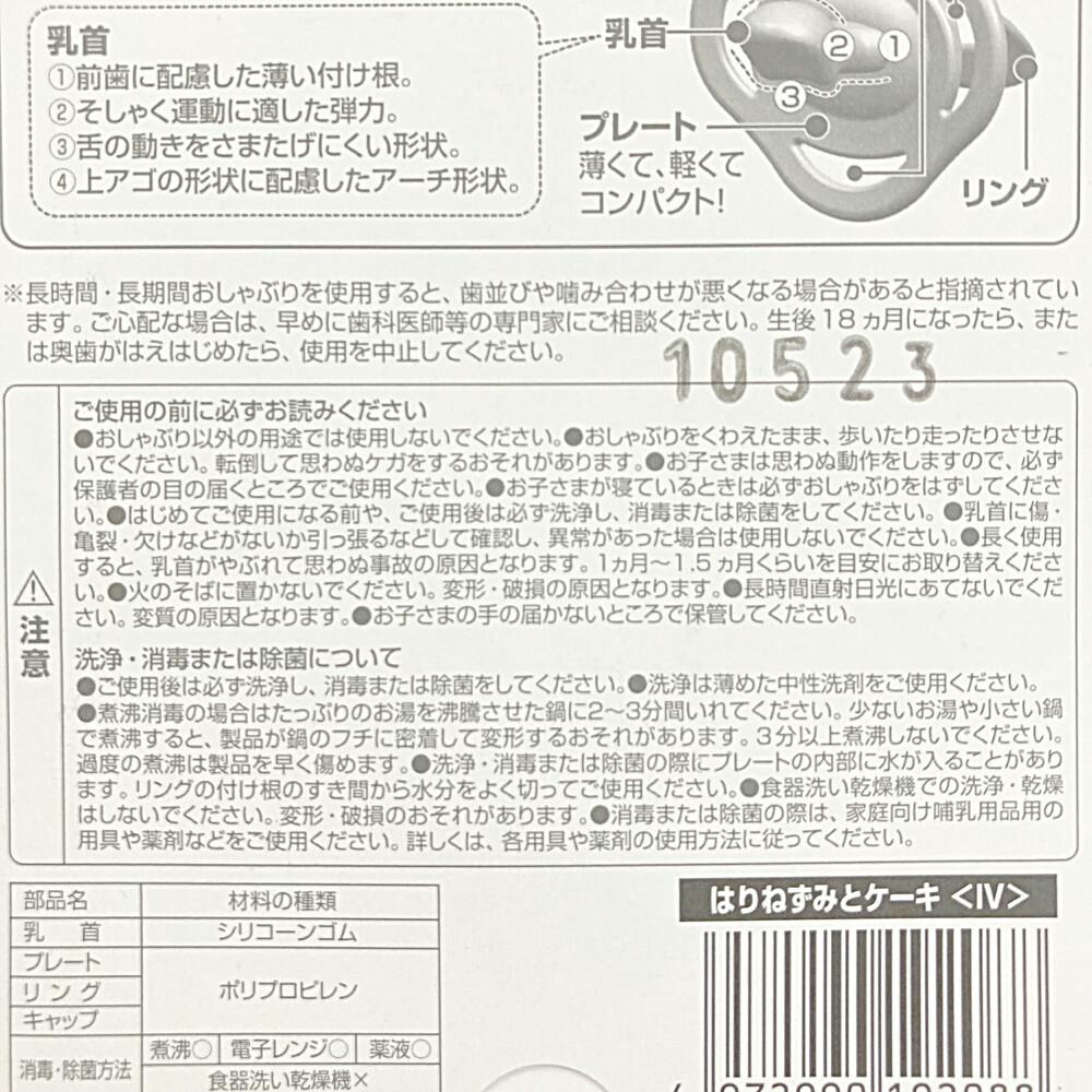●おしゃぶり以外の用途では使用しないでください。●おしゃぶりをくわえたまま、歩いたり走ったりさせないでください。転倒して思わぬケガをするおそれがあります。●お子さまは思わぬ動作をしますので、必ず保護者の目の届くところでご使用ください。