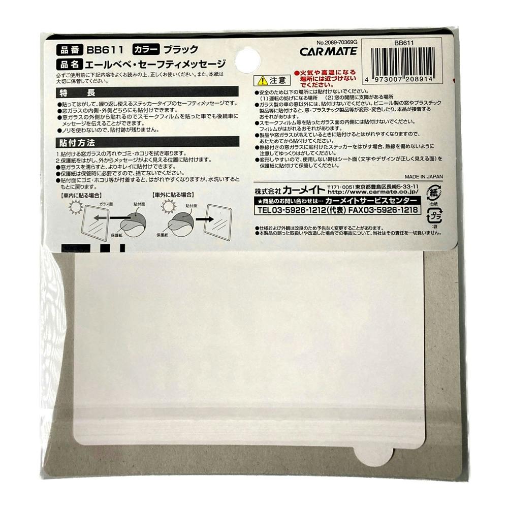 ●貼ってはがして、繰り返し使えるステッカータイプのセーフティメッセージです。●窓ガラスの内側・外側どちらにも貼付けできます。●窓ガラスの外側から貼れるのでスモークフィルムを貼った車でも後続車にメッセージを伝えることができます。